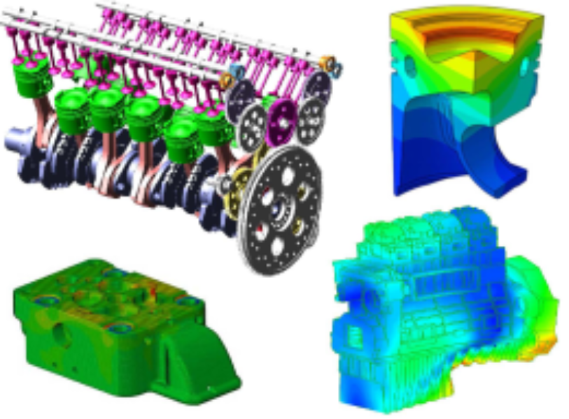 针对发动机运动件和固定件的结构动力学、应力场、温度场、振动噪声、润滑、密封、疲劳寿命等进行数值仿真和相关试验分析。在动力机械复杂结构数值建模与分析、高热负荷零件设计方面具有传统优势,多项技术成果在多型装备上得到应用。