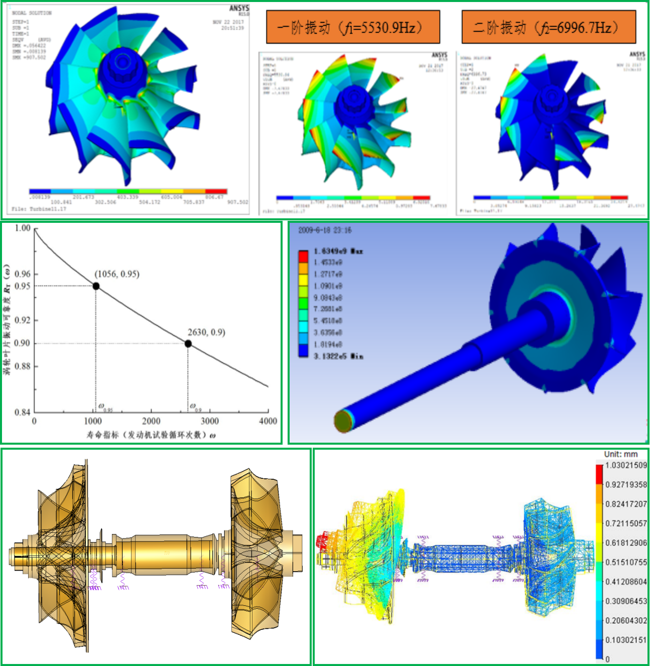开展了增压器叶轮在复杂环境/载荷下损伤/缺陷演化的机制和规律,形成了多尺度/多场耦合的新损伤理论,构建了基于失效机制的超长寿命预测及可靠性评估方法;针对微小型叶轮机械超高速、轻载荷、大柔性、小尺寸、变工况、多激励等特点,开展了转子动力学非线性激励、跨临界转速、多参数耦合等动力学特性研究。