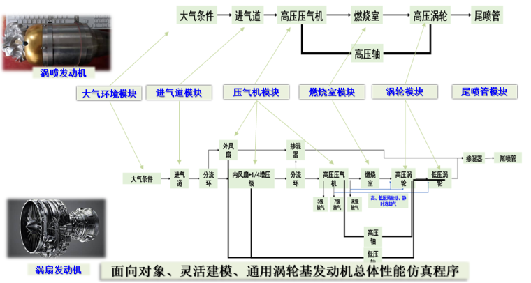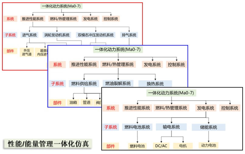 基于整机性能先进仿真方法研究,搭建了丰富的部件模型库,开发了面向对象、灵活建模、通用易用的涡轮基整机性能仿真程序;通过燃料/热管理系统、发电系统模型库开发,搭建了动力系统、能量管理系统一体化仿真平台;发展了整机0D、叶轮机部件1D/3D多维度融合协同仿真方法及工具;开展了微型涡喷发动机整机性能方案设计及核心部件开发;持续搭建和发展数字航空发动机/燃气轮机平台,并实施智能仿真。