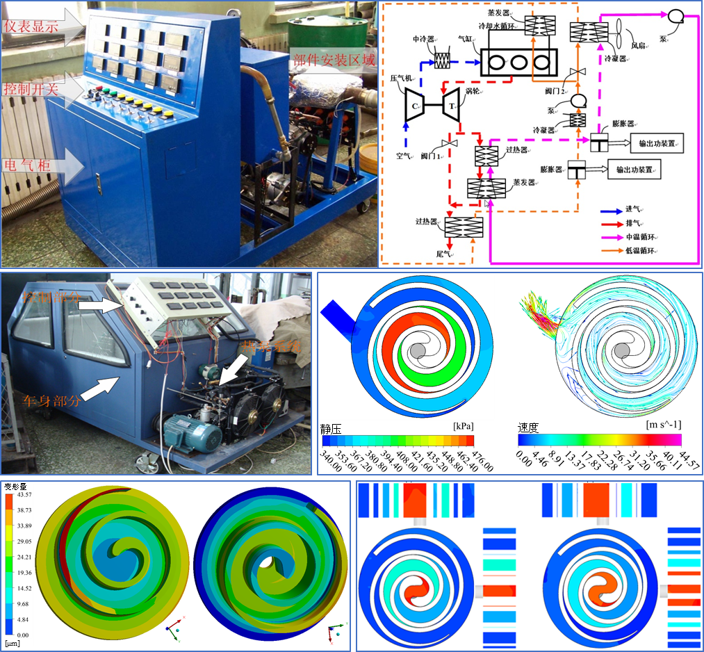 利用ORC技术开展了内燃机余热回收利用和太阳能光热发电研究;采用HFC工质和CO2工质,开展了新能源车辆热泵空调技术研究;针对新型热力循环中涡旋膨胀机开展了设计方法及性能研究;针对海洋无人动力系统,开展了新型波浪能利用机电耦合系统研究。