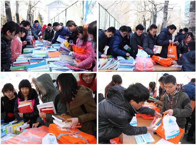 团委主办的“学习精神,薪火相传”学生赠书活动。在青年志愿者的倡议下,学院大四即将毕业的学生将课程学习、考研复习的资料收集、整理后,赠予有需要的低年级同学;拿到心仪书籍的同学们在排队登记后,每人还获得一张精美书签、一只手提袋作为赠品.一张张喜悦的面孔,无不体现着每位同学对得到学业上的帮助后的兴奋。两千多本图书在不到两个小时的活动过程中赠送完毕,这些书籍不仅作为知识的载体继续为低年级同学提供学习上的帮助,而且更向大家传递了勤奋刻苦的学习精神,传递了“团结、勤奋、求实、创新”的优良校风。