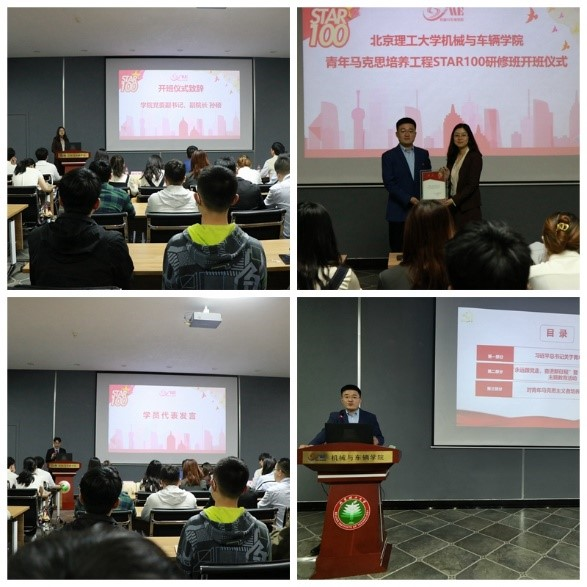 为贯彻落实团中央《关于深入实施青年马克思主义者培养工程的意见》,进一步提升学生干部思想水平和政治素养,4月21日晚,AVbebe “青年马克思主义者培养工程STAR100研修班”开班仪式在车辆实验楼报告厅隆重举行。本次开班仪式由学院团委书记、学工办主任郝佳馨主持,出席开班仪式的有校团委书记刘渊,学院党委副书记、副院长孙硕,学院创新创业教育中心主任赵方,研究生辅导员刘洋,青马学员及团支书代表。