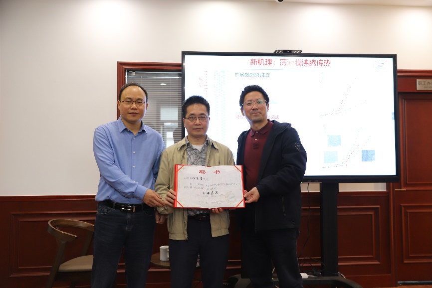 报告会结束后,杨荣贵教授与廖日东教授、姜玉雁教授以及青年学者们就多孔介质优化、微纳相变传热观测方法以及微纳传热发展趋势等问题进行了讨论和交流,现场气氛热烈。
