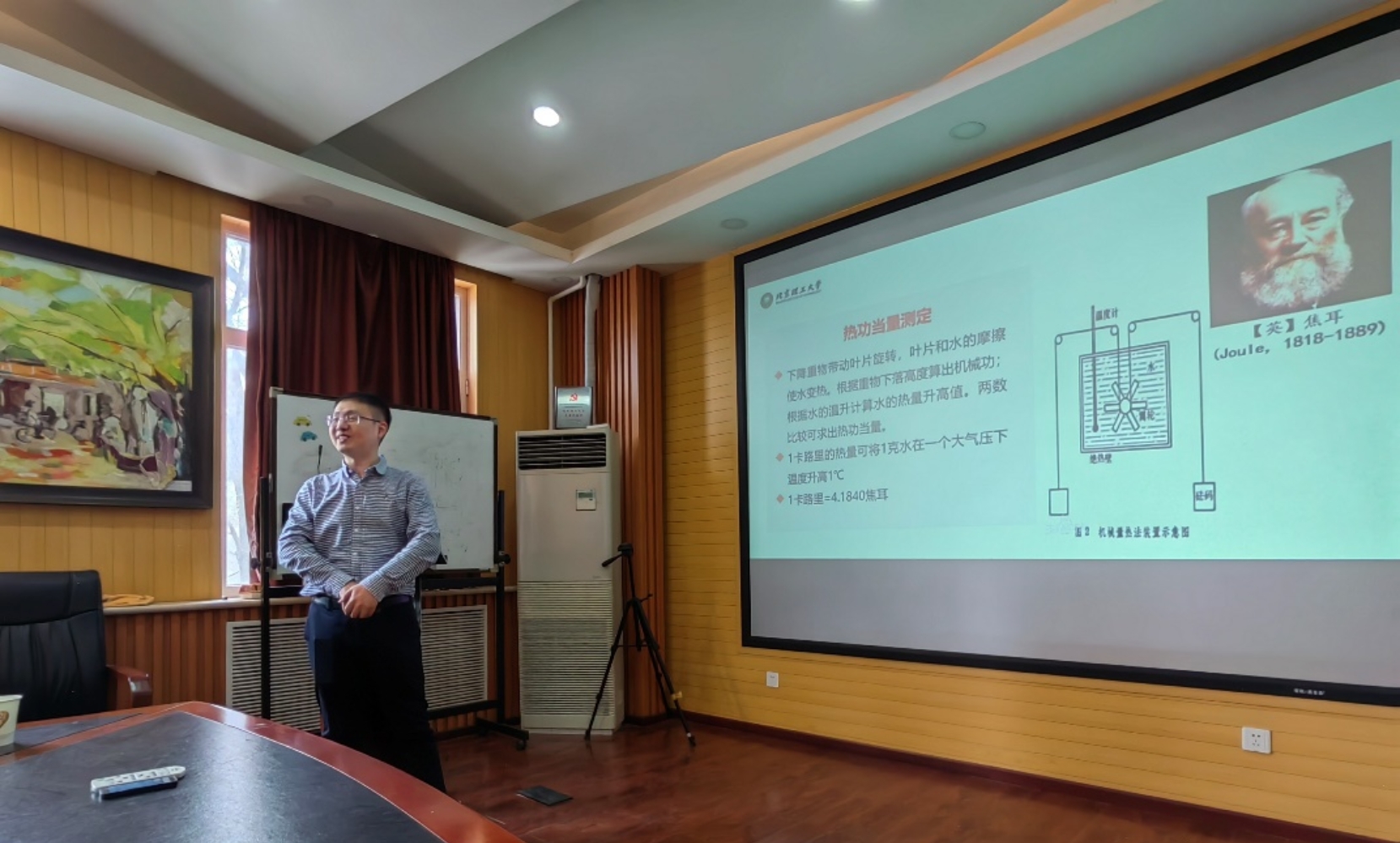 丁晨老师讲授的主题是《“工程热力学”之“热力学第一定律的起源和发展”》。课程内容精炼,思路清晰,巧妙地将教学知识点与思政元素融合,鼓励学生积极思考、敢于创新。本次教研活动气氛活跃,老师们通过经验分享和讨论加深了对教学方法和课程思政的深入认识,也纷纷表示在今后教学过程中要立足专业知识,深入挖掘课程思政元素,精心设计课堂教学内容,切实将知识传授与价值引领的理念贯穿于教育教学全过程。