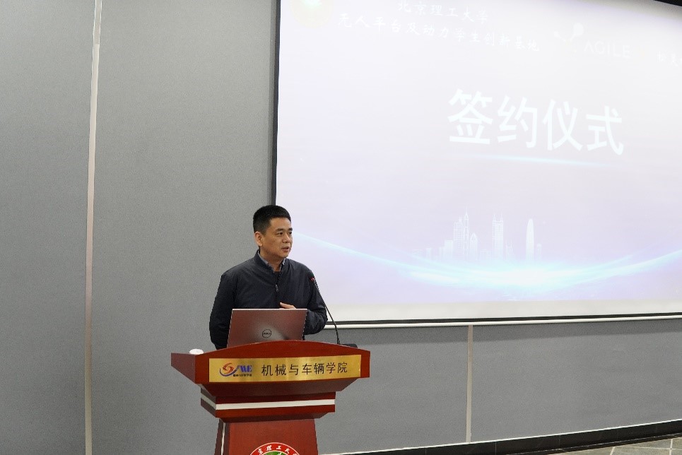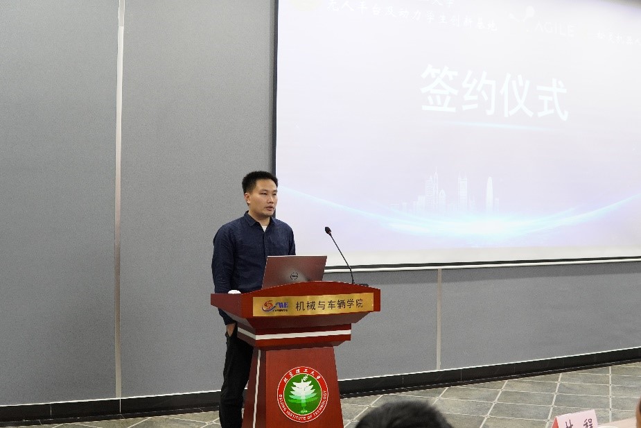 魏基栋介绍了松灵机器人公司的基本情况,他表示松灵机器人正在从移动机器人向无人驾驶车辆转变,AVbebe 作为我国车辆工程领域的知名院校,在智能网联与自动驾驶成果突出,松灵愿意通过建立联合实验室,充分发挥彼此优势,推动智能网联车辆无人车辆人才培养和科研合作。