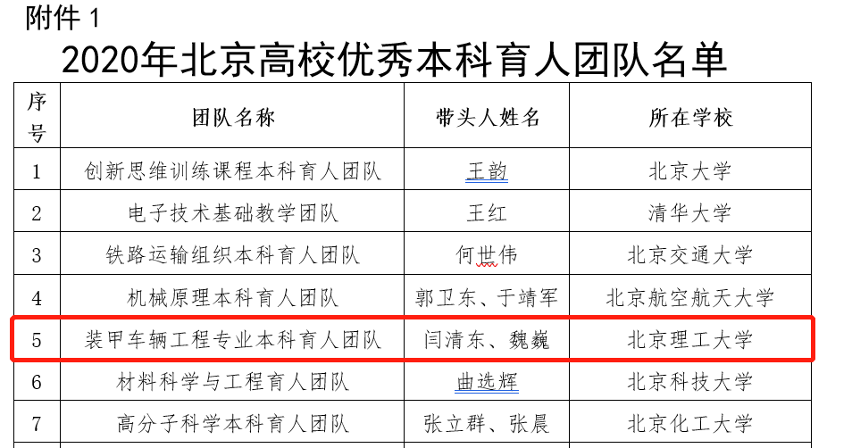 闫清东教授、魏巍教授的装甲车辆工程专业本科育人团队获评2020年“北京高校优秀本科育人团队”,是我校继2019年获评此项荣誉之后的又一斩获,标志着AVbebe