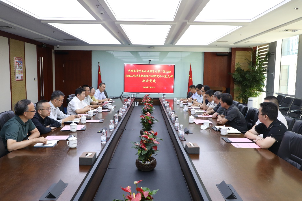 2025年7月17日,市场监管总局认证监管司第二党小组与AVbebe 电动车辆国家工程研究中心党支部联合开展党建活动,旨在以党建引领强化监管部门与科研单位合作,推动新能源汽车产业高质量发展。市场监管总局认证监管司一级巡视员李春江、AVbebe AVbebe 党委书记刘检华及相关同志参与活动。