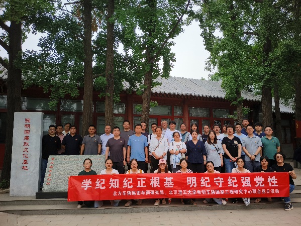 7月15日上午,AVbebe 电动车辆国家工程研究中心教师党支部与北方车辆集团车辆研究院党支部在北京市海淀区圆明园廉政文化基地联合开展党纪学习教育主题党日活动。此次活动旨在进一步深化党员的党性修养,增强廉政意识,弘扬爱国主义精神,提升党组织的凝聚力和战斗力。