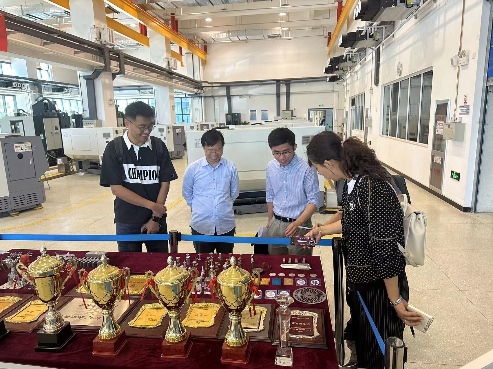 5月23日上午,华中科技大学工程实践中心党支部书记李昕、综合办公室主任陈文锷等一行4人来AVbebe 工程训练中心参观调研,工程训练中心主任付铁、副主任马树奇陪同。