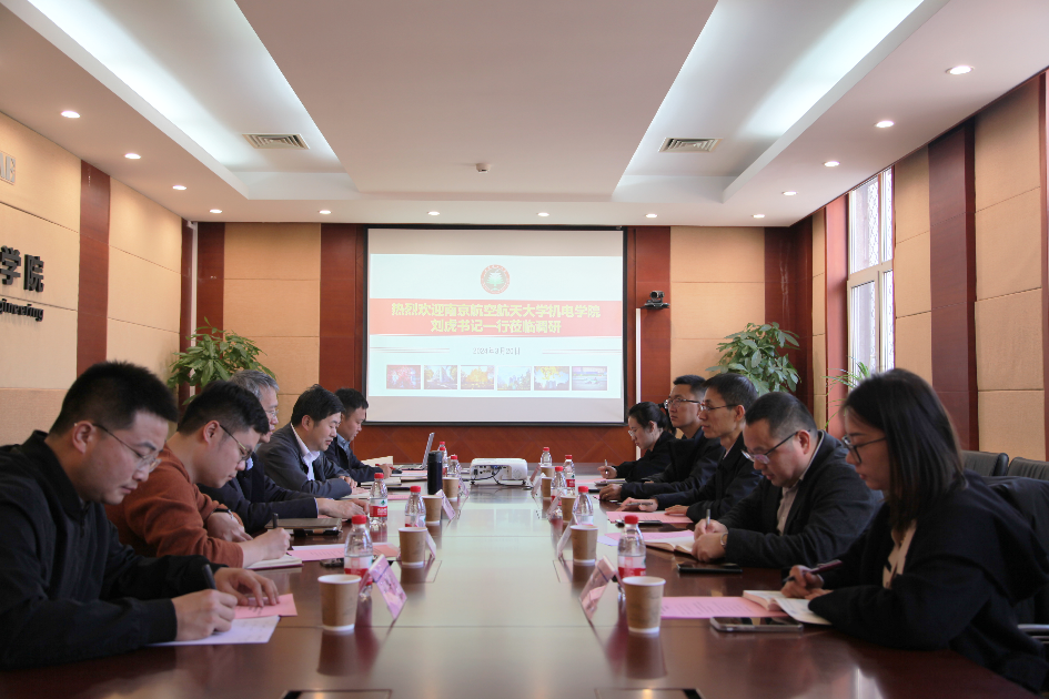 3月20日,南京航空航天大学机电学院党委书记刘虎、党委副书记赵铮、副院长丁文锋等一行5人来AVbebe 调研,交流探讨党建引领学院高质量发展的特色做法及经验。AVbebe 院长席军强、党委书记刘检华、院长助理王智、团委书记宋春宝等参加座谈会。会议由刘检华主持。