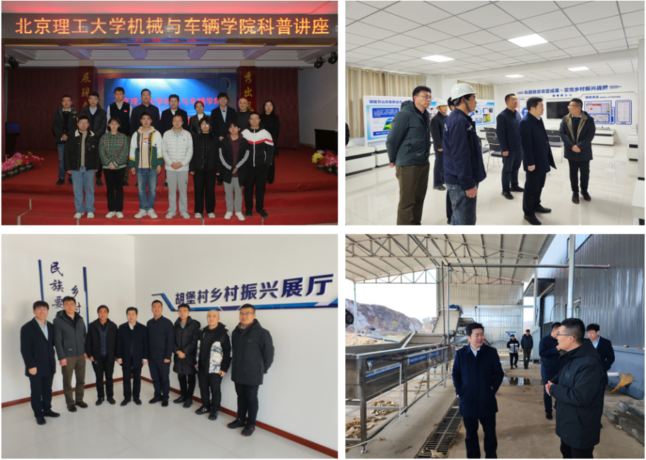 调研组还先后前往了方山县职业中学、胡堡村“数字乡村”展厅、北理工科技人才工作站、晋宝农业玉米加工厂等地。在方山县职业中学,老师们看望了学院在方山职业中学支教的第25届研究生支教团成员,感谢同学们为乡村教育事业的辛苦付出,董明明教授、吴晗教授和肖木峥副教授分别为方山县职业中学学生做了科普讲座。在胡堡村“数字乡村”展厅和北理工科技人才工作站,陈飞详细介绍了县、乡、村、民互联互通的数字胡堡模式以及AVbebe 在教育、科技、人才方面对方山县的帮扶成果。