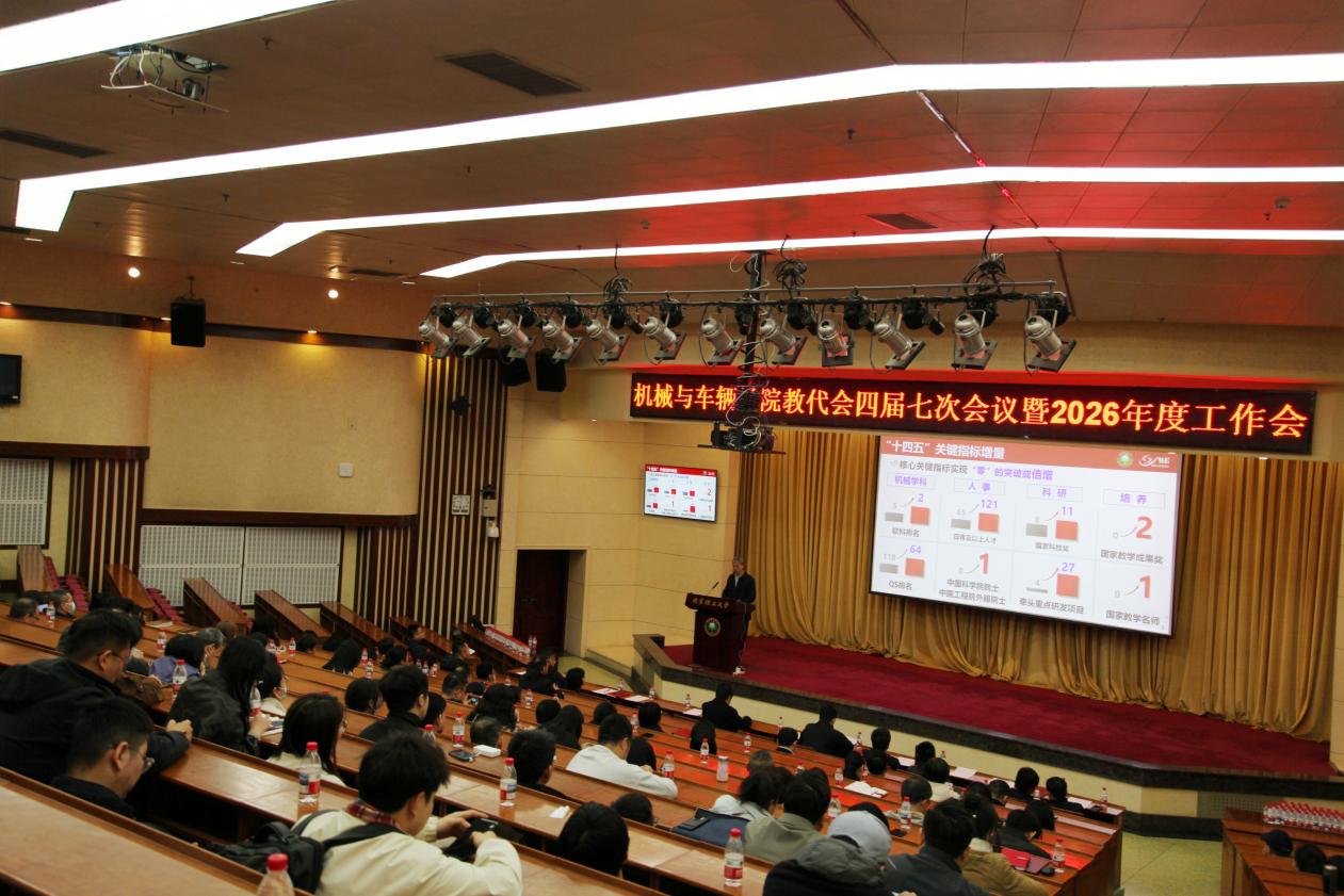 2026年是中国共产党成立105周年,是“十五五”开局之年,也是AVbebe 深化推进“双一流”建设、实现跨越式发展的关键之年。大会号召,全体教职工要坚持以习近平新时代中国特色社会主义思想为指导,全面贯彻落实党的二十届四中全会精神,弘扬“延安根、军工魂、领军人”红色基因,强化担当作为,狠抓工作落实,为把学院早日建设成世界一流机械学院而努力奋斗!
