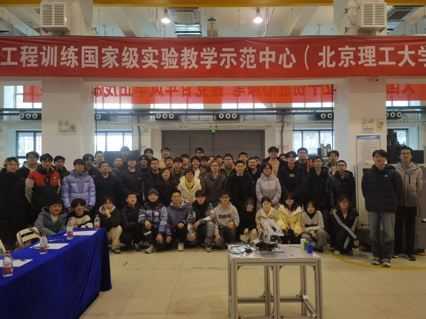 2026新年伊始,智能制造工程专业和徐特立英才班学生的《智能机电系统设计与开发》项目制课程答辩与验收活动在良乡校区实训楼成功举行。课程负责人付铁、郝娟,智能制造工程专业教学骨干王儒、检测与控制研究所所长周世圆以及工程训练中心尚妍、易恒、李春阳等教师参加了答辩与验收会。