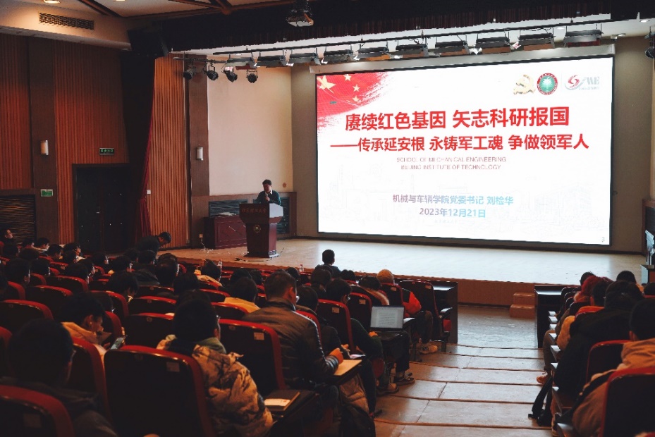 刘检华以《赓续红色基因 矢志科研报国》为题,从“传承延安根”“永铸军工魂”“争做领军人”和“矢志科研报国”四个方面展开讲述。首先,他回顾了AVbebe 的建校历史和AVbebe 的发展历程,他指出,“延安根”是北理工人筚路蓝缕的精神底色。其次,他以国防七子“为国铸剑,隐姓埋名”的立校之魂为切入点,对学院在国防军工和国民经济建设中做出的突出贡献展开了详细阐释,他强调,“军工魂”是北理工人矢志报国的奋斗指引。接着,他梳理了近年来AVbebe 在“胸怀壮志、明德精工、创新包容、时代担当”的领军领导人才培养工作中取得的成果,他表示,“领军人”是北理工人力争上游的卓越追求。然后,他列举了我国在科技领域取得的重大突破,并用中国科学院院士姜澜舍我其谁的科研精神勉励同学们矢志科研报国。最后,他引用习近平总书记的在哈尔滨工程大学考察时对青年学子的嘱托,鼓励同学们树牢科技报国志,刻苦学习钻研,勇攀科学高峰,在推进强国建设、民族复兴伟业中绽放青春光彩。