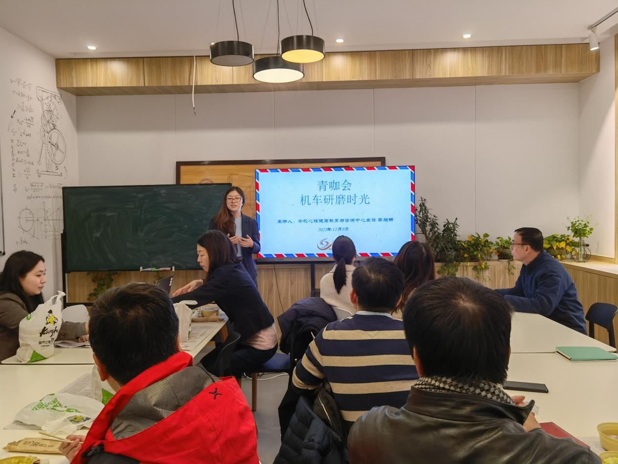 李旭珊主任细致的介绍了有关心理健康的基本知识及心理问题基本情况识别及对策,并就案例进行了分析。参会教师认真进行了学习,并与李旭珊主任就沟通技巧、心理相关课题研究等问题进行了充分的探讨和交流。